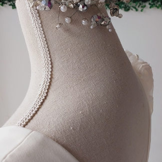 El resultado es un diseño armónico, trabajado en un mismo tono pero enriquecido con diferentes texturas, que refleja tanto la innovación como la artesanía de mi atelier.