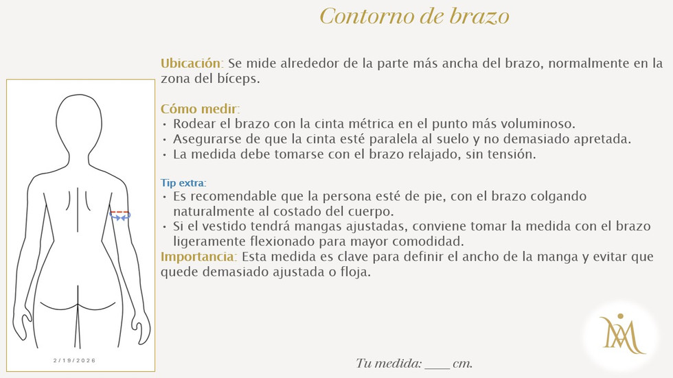 En este blog encontrarás las medidas básicas que toda novia debería tener en cuenta: espalda, busto, cintura, cadera, brazos y cuello. Estas son la base para cualquier diseño, y según el estilo del vestido, se pueden solicitar medidas adicionales que aseguren un ajuste perfecto.